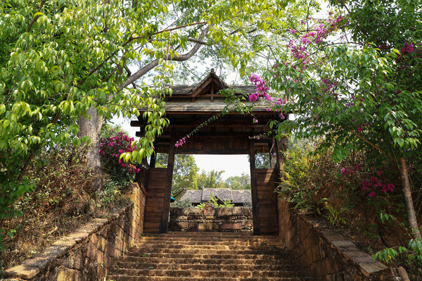 第22天3月19日一大早起来,告别了检查点的警官和边防武警。就是想晚起都不行,游客中心的经营者们,早上六点就开始摆摊了。大巴车拉着游客七点钟就到了。要在这里安检。从中心这里顺着320省道,开车二十分钟就到景真八角亭。就一个小寺院,院中有一八角亭。别看寺院不大,在佛教界的地位可不低。位置有点偏,如果不是自驾游,应该看不到。我们进去参观,一个游客也没有。只有一位师父在扫地。