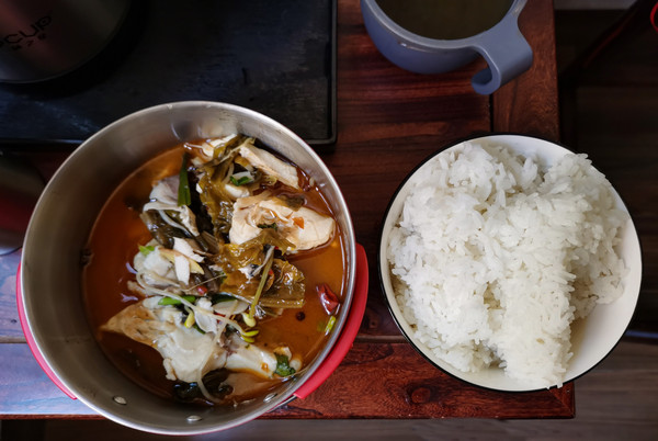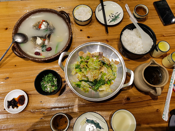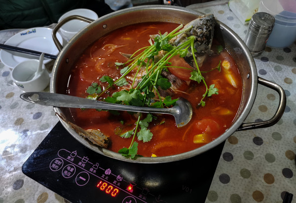 从平坝离开,下一站黄果树瀑布。到黄果树镇的时候已是下午一点多了,直接入住索特来文艺酒店,想休整休整,洗个热水澡。前几天住的酒店都很冷,不敢洗澡。到了南方才知道,寒冷的冬季,家里有暖气,是多么幸福的事情。晚上我们自出游以来第一次去饭店吃饭,为了安全卫生,都是自己做饭吃。镇上的酒店饭店几乎没什么人用餐住宿,现在黄果树瀑布是淡季,再加上疫情的原因,饭店有的关门歇业了,有的灯都不开,这样的店都不敢进,怕食材不新鲜。最后找到一家也经营早餐的饭店,觉得食材应该比较有保证,进去看看鱼是活的,就点了个特色酸汤鱼55元一斤。看来不景气的时候要价都不低啊!鱼有三斤重,配菜是送的,味道还不错。