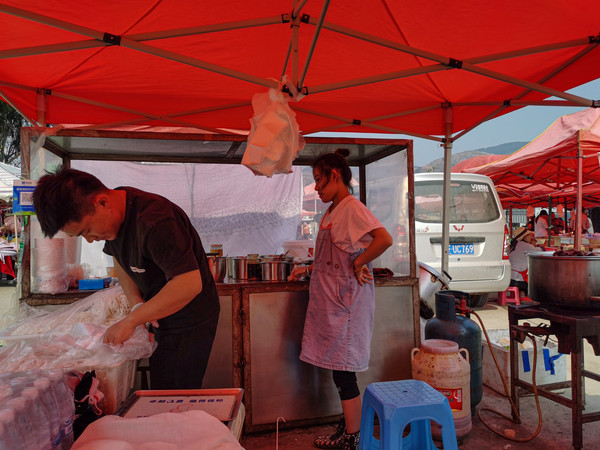 第二十一天3月18日 从植物园出发去傣族园。在219国道跑了一段,路过一小镇。下车补充了水果矿泉水,正好还没吃早饭,看到路边有卖豆浆油条的,油条还好豆浆好像是粉冲的,很甜还有沉淀物,不如我们北方用黄豆现磨的豆浆好喝。油也是菜籽油,不如花生油香。不过也能解解馋虫。上次加油是在高速墨江服务区,油价是6.98元,今天在曼迈空的中石油加油就成了7.21元。这油价简直拉高了这次的出行成本。