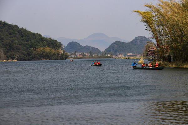 第十二天3月9日今天出发去普者黑,早上起来有雾,日出是没有希望了,从这里去普者黑只有一条山路。弯道很多大约需要四十分钟。没想到一进盘山路雾气就严重了很多,能见度不足五米。也就是早上,如果是傍晚的话,就不敢走了。大概到了十点多,雾气渐渐散开,当时路上车不多,我家司机有点放飞自我,在弯道上车速越跑越快,一个急弯车子甩尾了,仗着老头的驾驶技术不错,险险控制住了,吓得我心惊胆战,路的两边都是悬崖,太危险了。一路看好司机控制好车速,大概十一点钟开到了山顶,没想到山头上还有一个活牛活猪的买卖市场,拉牲畜的车就停在路边,剛说这样太危险了,一共双车道还占道停车,,没成想拐过弯就堵住了。前面一辆旅行大巴,对向车道停着一辆大货车,车上没有司机,大巴车拐不过去,卡死在弯道上。雪上加霜的是正赶上赶集的日子,道路两边各种摊子,行人摩托都也堵得动弹不得。半个小时后警察到了,打电话找人,指挥开车,各种疏导,在堵了两个半小时后,终于开动了。看路边的标示是师宗县高良乡的大集。离开的时候,我家那位向站在车流中的警察同志表示感谢,两人亲切的握手告别,特别美好的画面,等我想拍照留念的时候,车已随着车流开动了,非常遗憾。