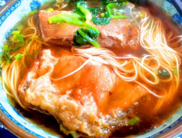 听说古镇上的奥灶面很有特色,于是来到水畔的一家名叫廊桥奥灶面馆的小店品尝。该店标配的一份鸭肉加鲍鱼奥灶面味道十分鲜美,鲜嫩的鸭肉加上大块的鱼排,原本以为很贵,结果餐后付费,每碗才30元,在旅游景区能用到物美价廉的特色美餐真是不错。相对于因票价高昂在一座寺院内未能瞻仰到的叶圣陶纪念馆的遗憾,记者内心多少有些安慰……但无论如何,甪直古镇水乡行还是收获良多,并再次留下了一段人生难忘美好的回忆。(图文:冯赣勇)
