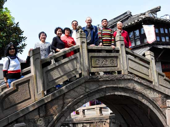 甪直古镇廊桥合影留念