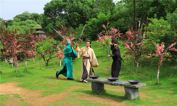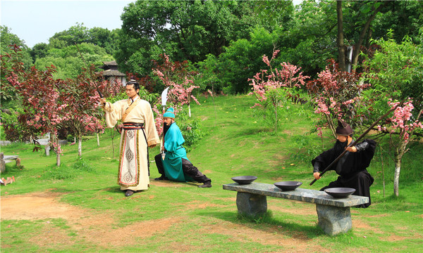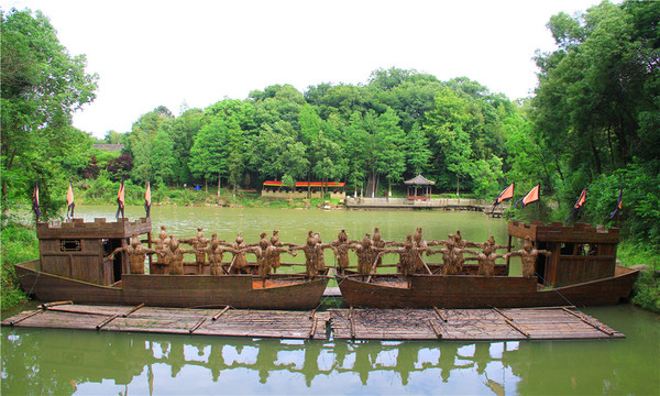 Day1:湖北赤壁三国古战场、赤壁拜凤台、赤壁钟鼓楼、赤壁凤雏庵、三国雕塑园、桃园三结义、长板桥、拜风台、草船借箭、赤壁翼江亭、赤壁大站陈列馆、赤壁塔、赤壁金城土城