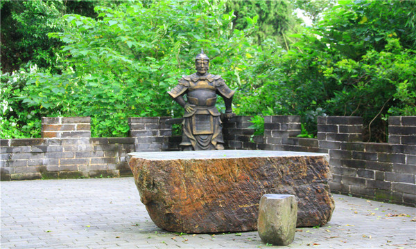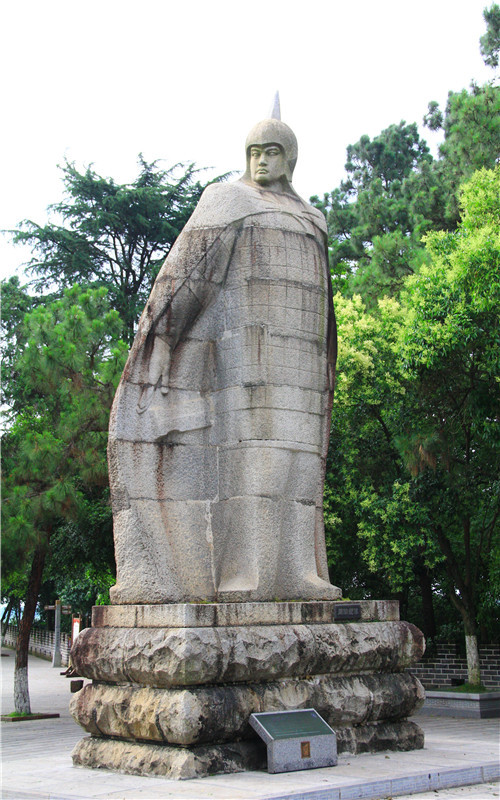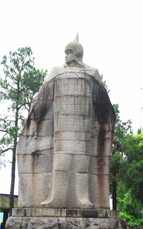 周瑜系赤壁之战中孙、刘联军的主师、总指挥,塑周瑜像于矶头,为的是纪念这位英雄。周瑜(175—210)字公瑾,安徽舒城人,出身士族,少与孙策为友,后归策,为建威中郎将,助策在江东建立孙氏政权,策死,与张昭同辅孙权,任大都督。赤壁之战中,功绩第一,后病逝。