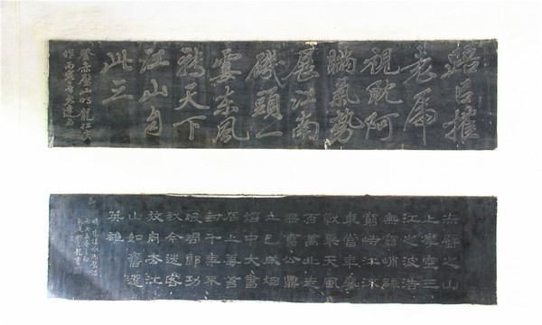 赤壁矶头临江悬崖上,有石刻“赤壁”二字各长150厘米、宽104厘米,相传是周瑜破曹后,一时兴起,挥剑在石上刻下,但据字体考证,当是唐人所书。