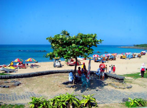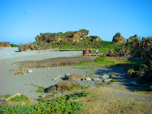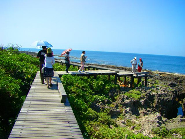 在海边,首先可看到礁石正平缓地伸入海中,在外海和内海之间,又有突起的珊瑚礁,表面侵蚀成圆洞的小壶穴,处处吸引游客好奇的眼光。