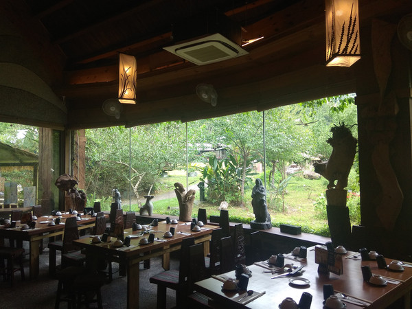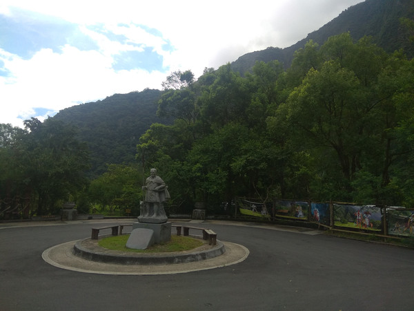 我们这次在山上住的饭店是我们这些天最贵的,但物有所值。首先,这里的建筑很有民族风格,太鲁阁人的民族英雄是哈鲁克那威,比赛德克巴莱要早。上世纪初时领导起义,干掉几十个日本鬼子,他的雕像就守卫在门前。