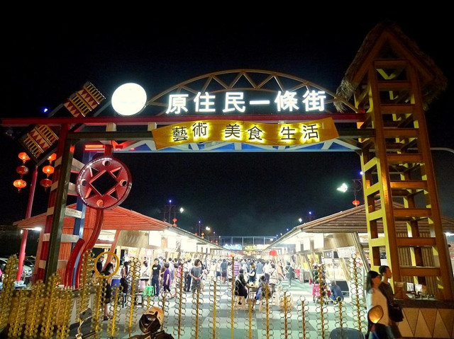 原住民一條街以木竹為建材,洋溢自然與原始風味,新鮮現採野菜與炒山豬肉、石板烤肉、阿哩蹦蹦、小米酒特調等原住民風味餐,不只讓遊客在此重溫部落美食的美味,也讓原民鄉親感受家鄉的親切感。
