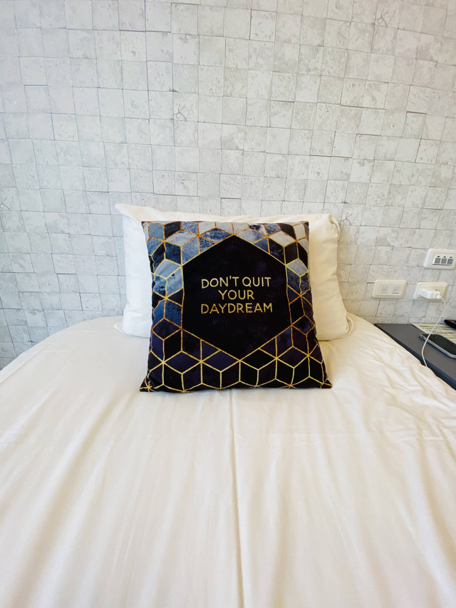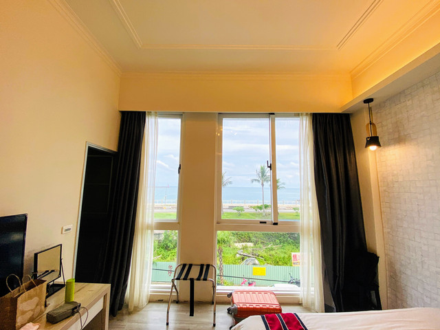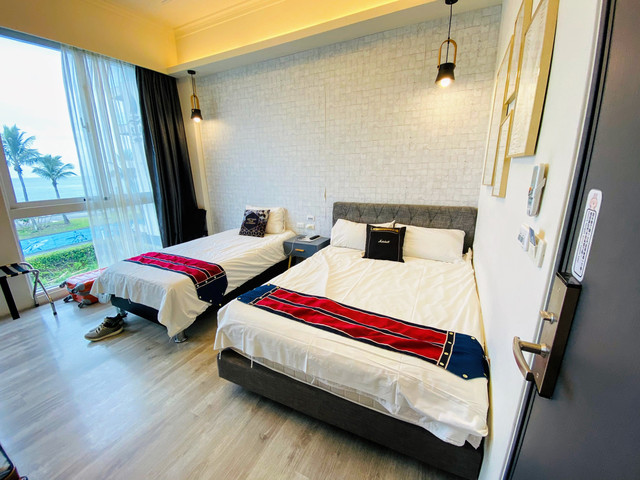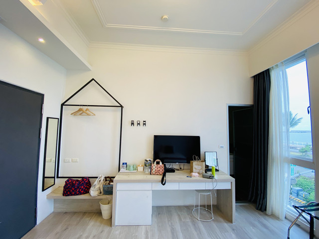這間三人海景房真的是可以看到海邊,雖然是隔著一條馬路,但還是有臨場感。房間還算寛敞,佈置簡單中帶著一些文創感。
