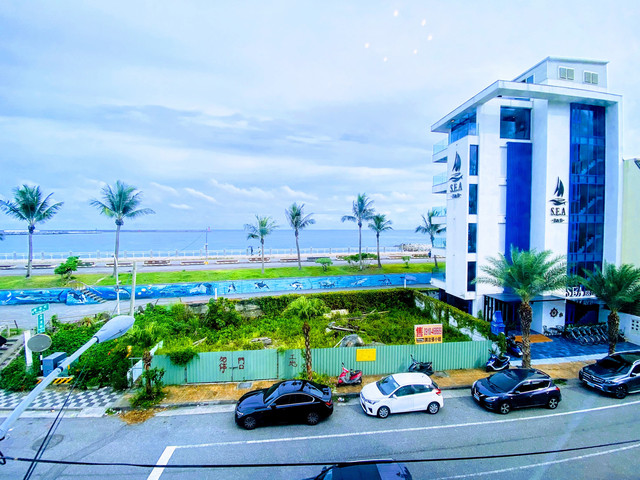 今晚我們住宿在花蓮市,一間CP值非常高的旅宿,原本叫做蒂芬海岸海景民宿,已於2020年改名為微藍海岸海景民宿。位於花蓮市海濱街景觀第一排,隔著一座堤防就是廣闊的太平洋。這裏交通便利,3分鐘可到東大門夜市,對面就是花蓮最美的自行車步道,提供專屬網美餐廳24小時免費使用,有免費的泡麵、飲料。也有免費的自行車可使用。雖然是民宿,但這可是有電梯的民宿,有著重重的行李也不怕抬不上去。最棒的就是它正面對著海邊,我靠著窗邊就可以看到漂亮的海景,還可看到花蓮港的燈塔。住在市中心就可看到大海,真是開心啊!