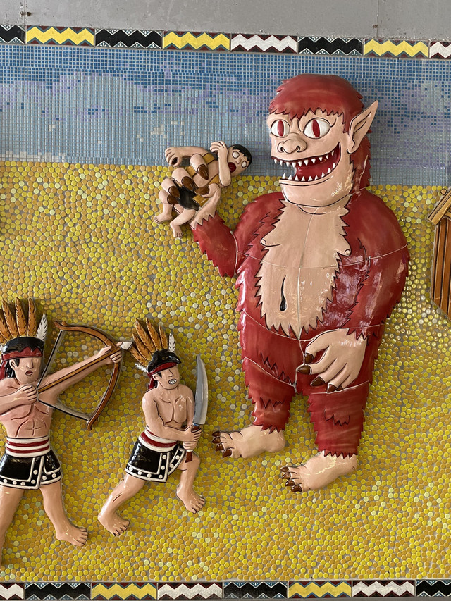 這座盪鞦韆的主題是「土地上的快樂」,主體是運用田土、稻草、稻榖來形塑海洋章魚與植物發芽的型態,象徵海洋與土地給予我們的豐沃資源,而鞦韆則呼應這片自然風景給予的舒適感,享受只要待在這土地上就很快樂的簡單態度。(意寓深厚)