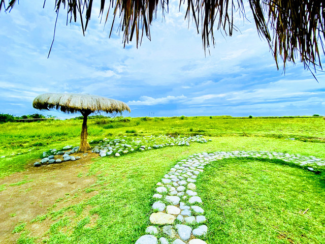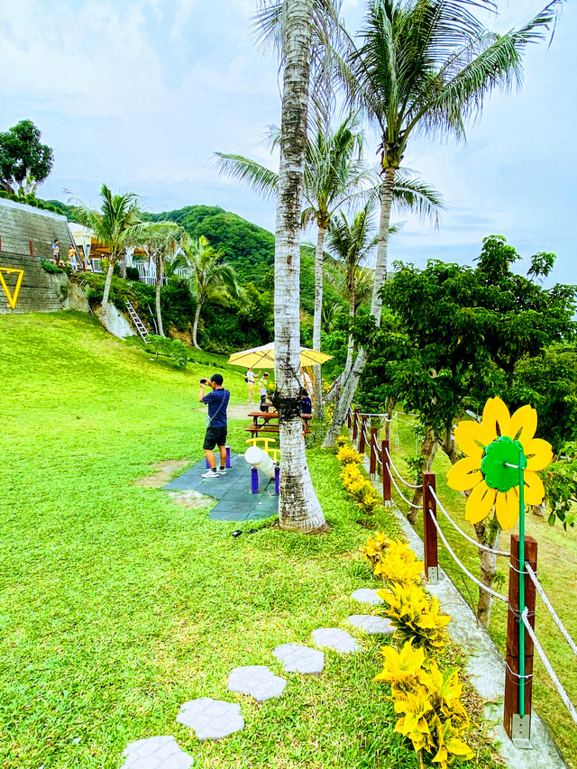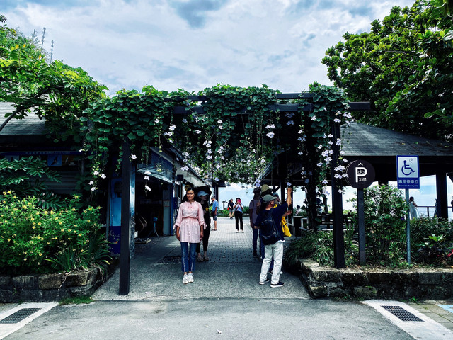 芭崎除了瞭望台以外,也設置了休憩區,有停車場、販賣部、洗手間。我們就坐在木頭桌椅喝飲料玩手機,在樹蔭下一陣陣海風吹來,,突然有點睡意了。