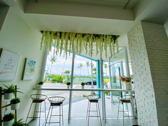 面向櫃檯右手邊,是小巧溫馨的大廳,舒服的沙發與純白半透明窗廉,渡假感十足。再佈置些小玩偶,更是拍照的好道具。坐在窗枱邊也可看到海邊,一個放鬆發呆的好座位。