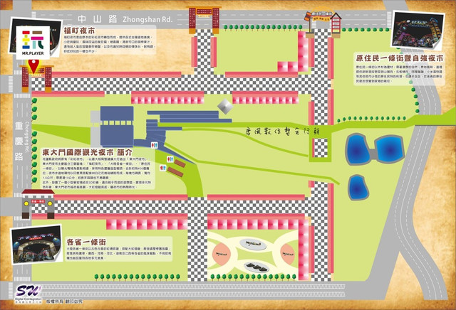 花蓮東大門夜市包含福町夜市、大陸各省一條街、原住民一條街與自強夜市一條街四個部分。