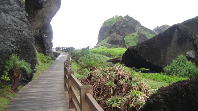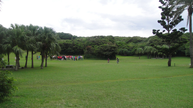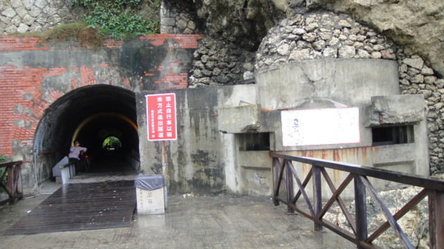 第四天,一早我们坐上大巴来到台湾的最南端鹅銮鼻公园,就是我们看的台湾地图的芭蕉叶杆的部分。先是参观一个废弃的军事基地,暗道、碉堡隐藏在礁石与灌木中,这是50年代国民党军队修建的防御工事,现在提供游客参观。