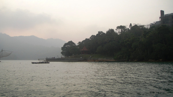 第二天的行程是游览日月潭。一早起床,准备完毕来到湖边,坐游艇往潭心的小岛而去。游艇上,台湾的导游小哥不停地推销据说是宋美龄的专属香烟----美玲香烟,如今作为台湾特产向游客们推荐。当然,这样的特产是有特殊人群的,绝不是我青睐的物品。日月潭中间的小岛叫拉鲁岛,以它为界,北半湖状如圆日,南半湖形如月亮,日月潭因此而得名。坐游艇一上岛就看见如同大陆报亭一样的售货亭,挂着大大的手写招牌:阿婆香菇茶叶蛋。呵呵,台湾人觉得大陆人很穷,因此我们豪气地一人买了两个鸡蛋,在阿婆惊讶的眼光中,找回自豪。