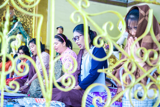 走着走着,被一阵悦耳的歌声吸引去了。原来是当地人在唱诵佛经。