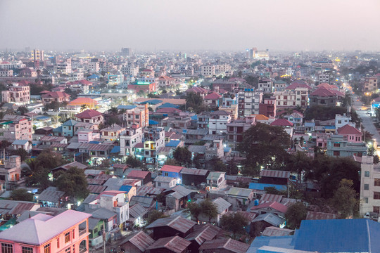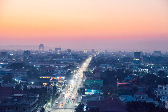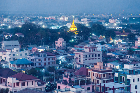 俯瞰曼德勒城市的街景。是呢。也许不是想象中美好的样子,别急,等夜幕降临后,你就会喜欢了。那时,月色朦胧,自带柔焦和滤镜功能,会模糊掉一个城市的缺憾。就像一句话所说,你可以在月光下认识你的情人,但你一定要在阳光下认识你的终身伴侣。