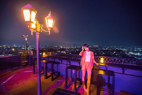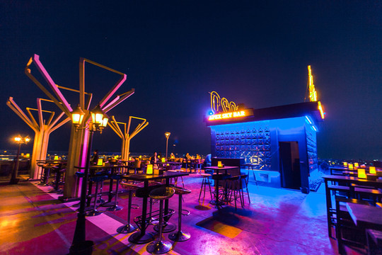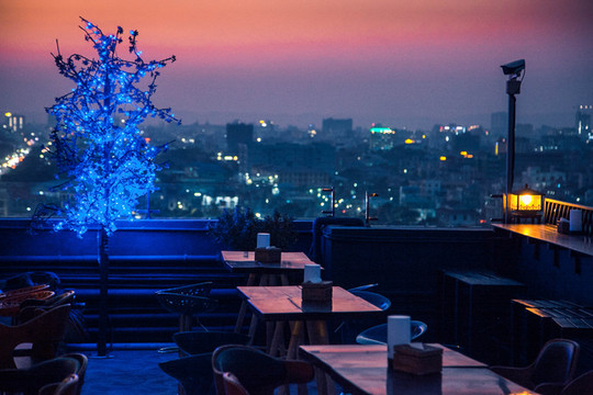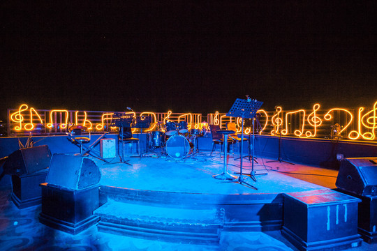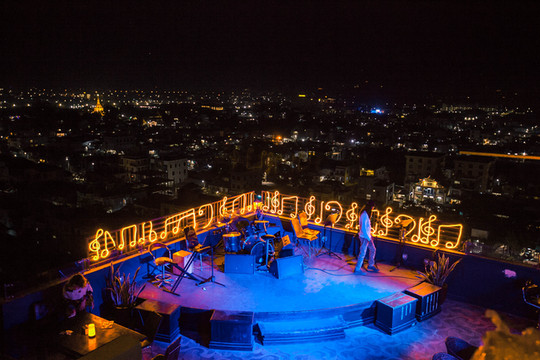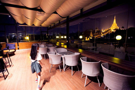 哇!乐队驻唱来了, 缅甸的流行乐还真挺好听的。特别是他们也会翻唱 中国 的流行乐曲。潼前一天在这里待到十点多才回房间,还听到了缅甸版童话,她也说缅甸歌曲好好听啊。是呢,潼在的这一天,其实我和威吃烧烤自助了,回酒店在电梯间无意看到楼梯按键有sky bar,我们就直接坐到顶层看了一下,谁知一上来,就立刻爱了。乐队的歌曲,真好听呢。我们其实当下就决定第二天晚上一定要在这里用餐。