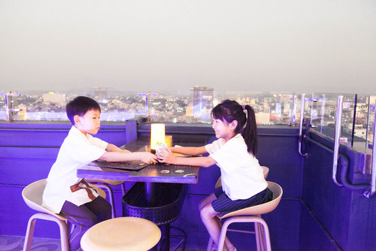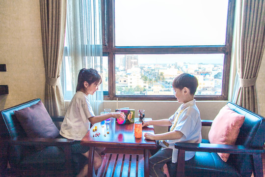 我带着两个小朋友一起上来,酒吧还没什么客人,全是他们两个的尖叫声。