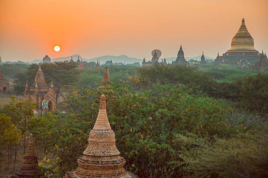 蒲甘走了一天,一直寻找地势高处,希望还能亲眼见证日出的美好。无奈全都不理想。目前有一处官方观景台,在娘乌一家星级酒店里,曾经这里几乎无人问津,现在却是人满为患。这里再好,这远远的距离感怎么能和爬塔的直接和震撼相提并论呢。