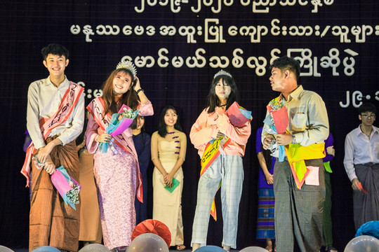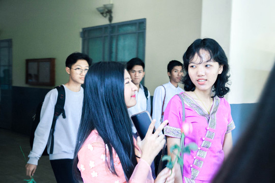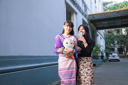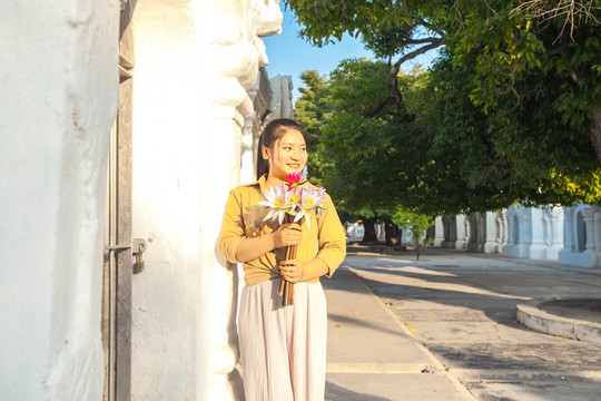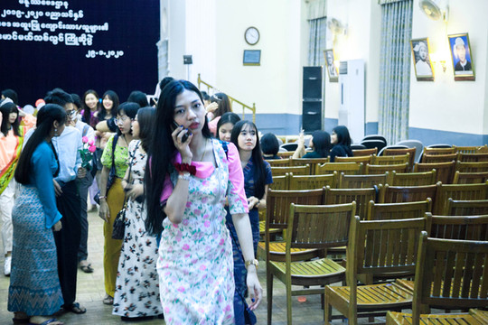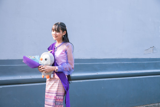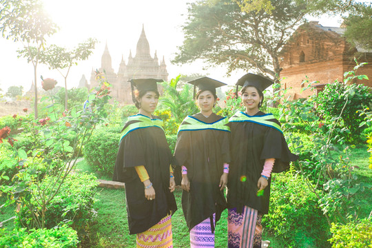 临近仰光大学,就看到街上有好多穿着传统服饰的漂亮女孩,三五成群,嬉闹逗笑地行走着,青春又朝气。