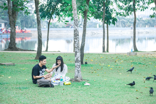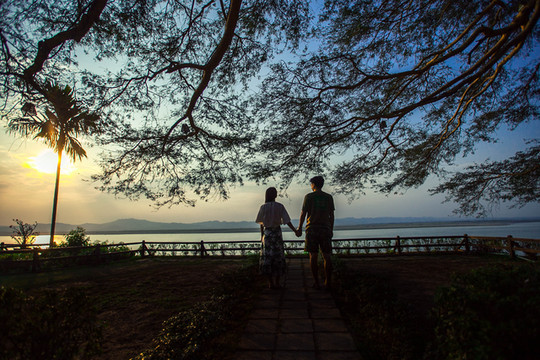 绕来绕去,终于走到仰光大学的正门,对面是茵雅湖。碰到一对野餐的情侣。
