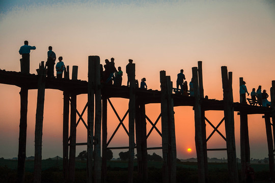 太阳完全消失了。我走到桥底,被深深震惊到。我见过无数精致又高科技的桥,如此原生态又如此壮观的桥真是第一见。站在桥底,能清晰的听到桥上人们走路压迫桥身发出的咯吱咯吱的声音,如此清脆,好怕会脆弱的坍塌啊。