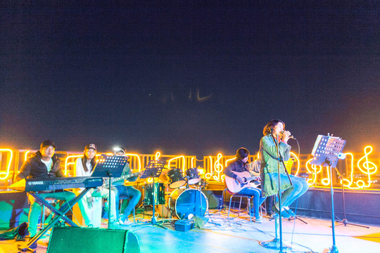 有好几位歌手轮流演唱。看夜景,吹着风,喝小酒,聊聊天,真是美好的感觉。