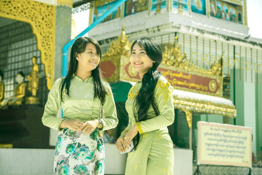 缅甸女孩大部分都长不错,身材娇小,特别适合穿隆基,束出好身材来。这倒和越南很像呢,穿着奥黛越南女子也是很曼妙的。