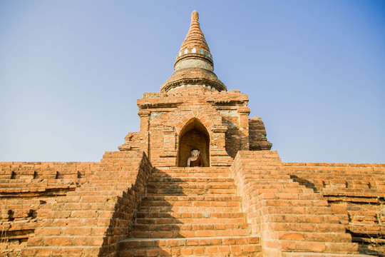 走在蒲甘这两天不断有些神神秘秘的当地人,把你拉到角落,告诉你climb temple,他们说这塔是no name,是秘密,给点好处费就会带你去爬。显然,上有政策下有对策。我想在蒲甘不出意外是可以爬到塔的。就是看到的风景如何,这就像抽签了,全凭你运气了。