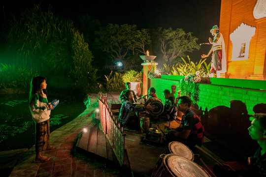 后来听到一阵音乐声,我循声而去,原来是传统的木偶戏表演。我赶紧打电话告诉老公有表演呀,才算把他们从房间请出来。