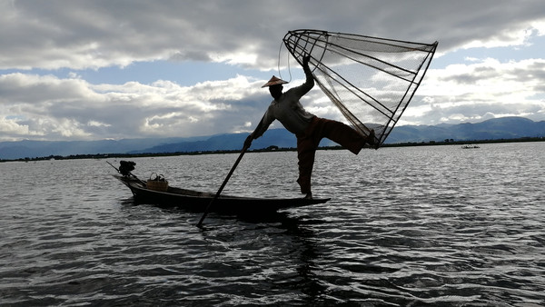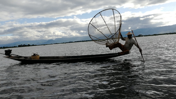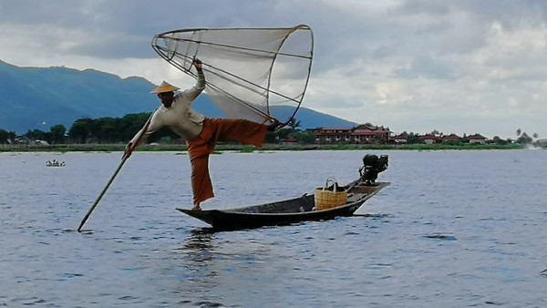 付费人民币五元,茵莱湖渔夫就会卖力的表演缅甸古老的渔猎项目。
