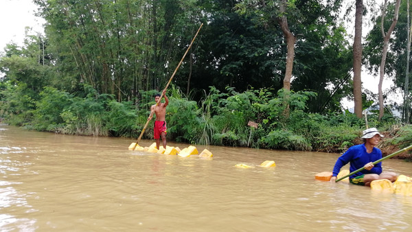 用塑料桶自制的筏子