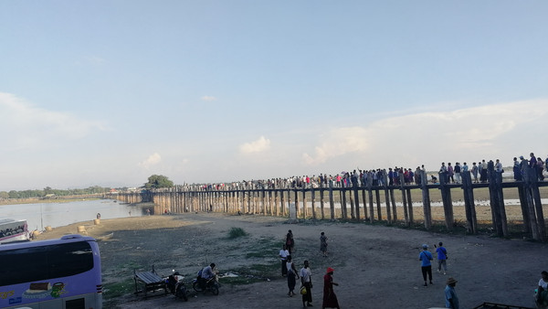 由于东塔曼湖是季节性湖泊。雨季时期湖水上涨会淹没周边,为了解决交通困难,敏东王修建了这座桥。日落之前,在桥上漫步,放眼所及的景致并没有想象中的美好,很难想象,这就是传说中的全世界最美的乌本桥日落的所在。