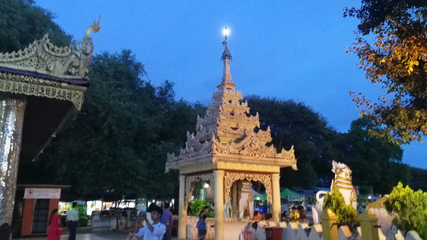好在有小丫头的精心准备,办好签证出关后接机人员已经等候多时了,天已经黑了下来,司机能说点儿不太顺畅的中文,路上,爱人和小丫头兴致勃勃的向司机学习最简单的缅甸语,什么“你好”、“再见”、“怎么卖、便宜点儿”之类的---到达酒店是已经是当地时间23点。奔波了十多个小时已经很累很累,来不及看曼德勒的夜景便早早睡下。