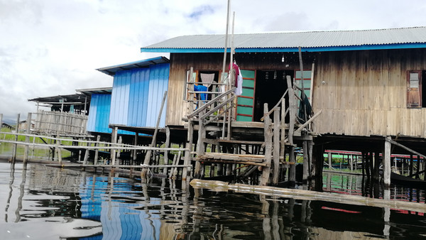 生活在水乡泽国中的茵莱湖茵达族人,一般是把四根高脚木桩的房屋建在湖畔或岛边的浅水中,形成了一个个水上村落。远远望去,碧水之上村落点点,别有天地。