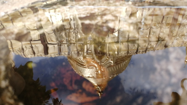 下面图片是在专门设计的一个手掌心大小的水坑里拍到的,据说有缘人才能拍到塔顶完整的图像。