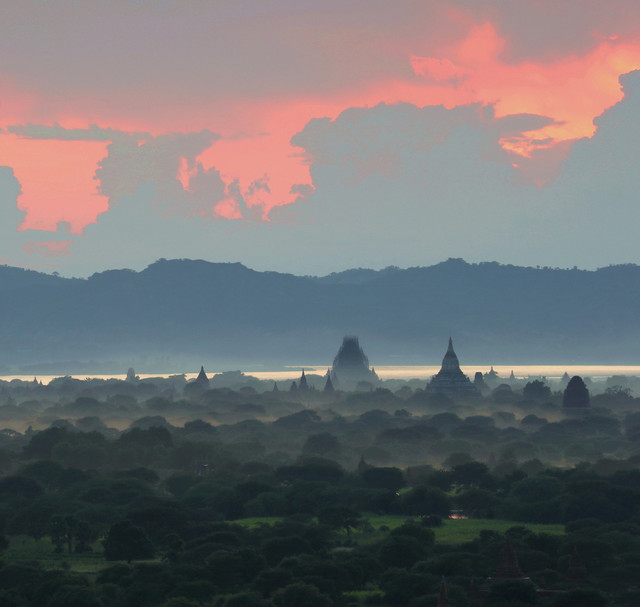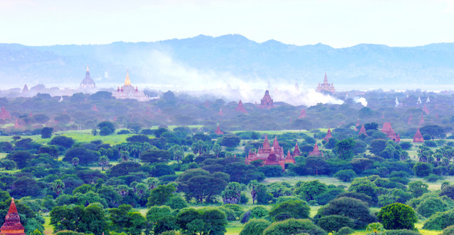 我们乘坐大巴车4小时到达蒲甘,蒲甘的佛塔林