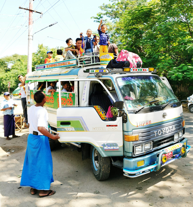在缅甸各城市之间交通主要是公交大巴,有几个公交公司运营,到旅馆后前台都会卖汽车票,买票很方便,旅馆绝不加价,把钱给到旅馆柜台后,只给你一个写着大巴车信息的纸条,找车上车就行了。此外就是飞机了,因为都是小飞机、价钱有点贵并且也想体验当地生活,没坐过。
