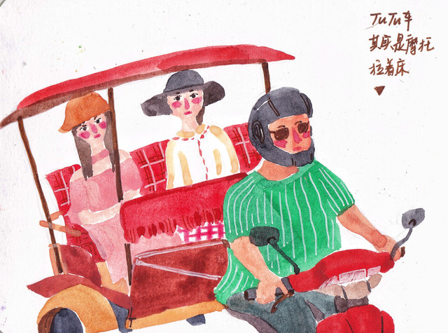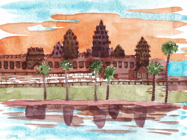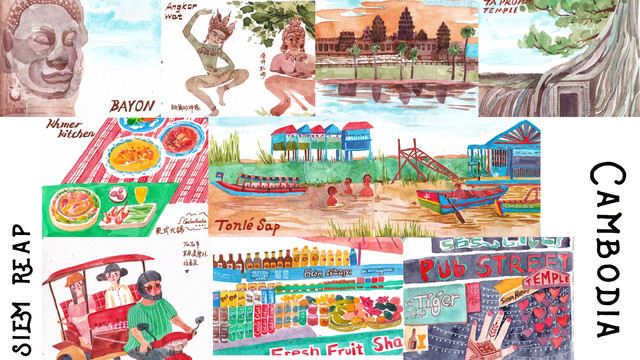 手绘柬埔寨|坐tutu游吴哥窟,在暹粒的十张小画