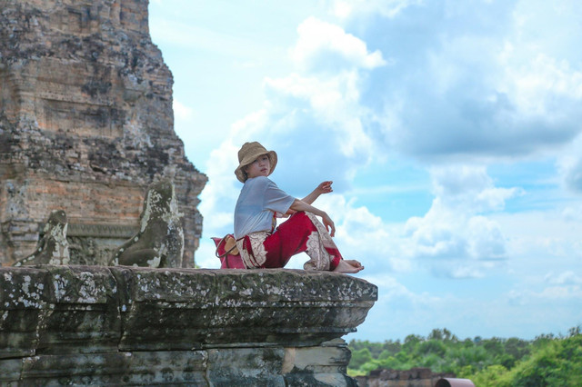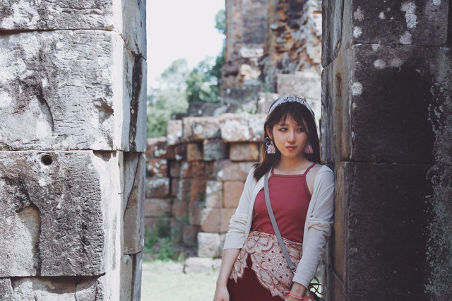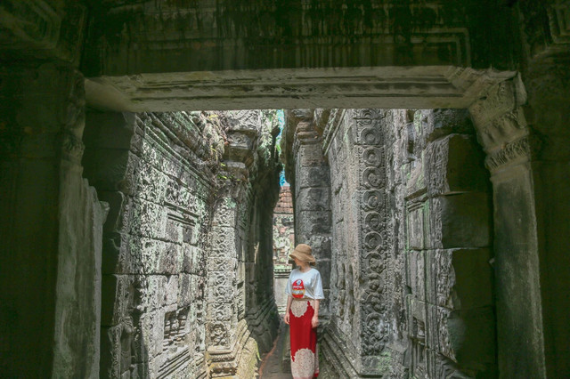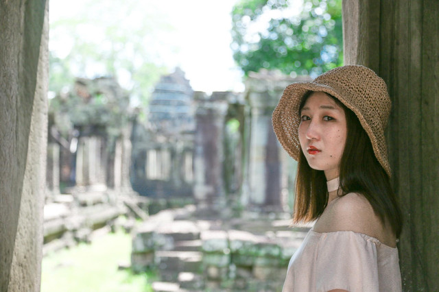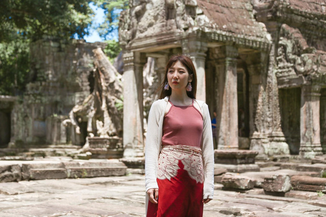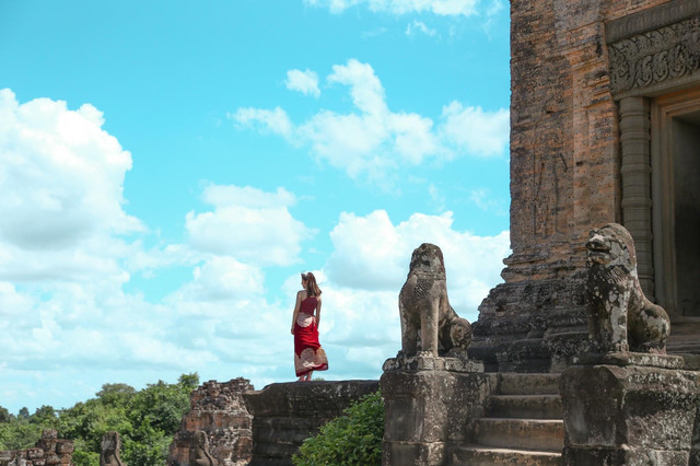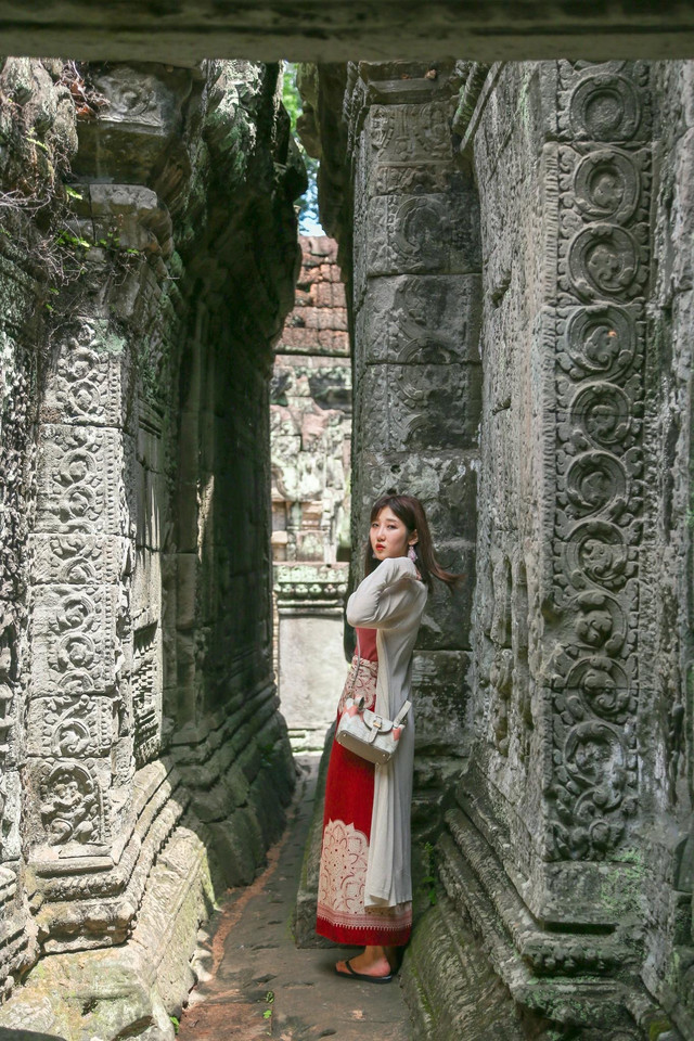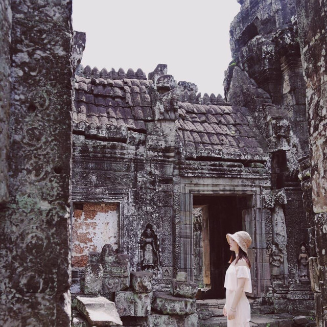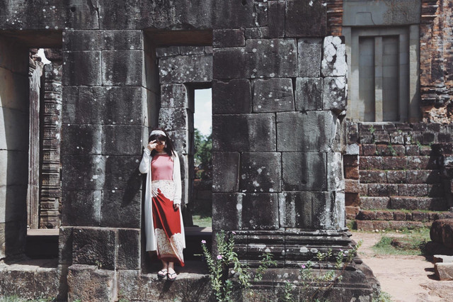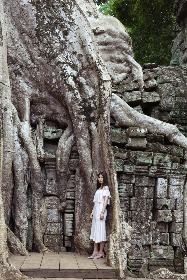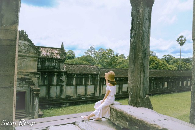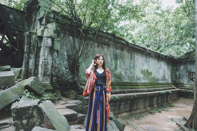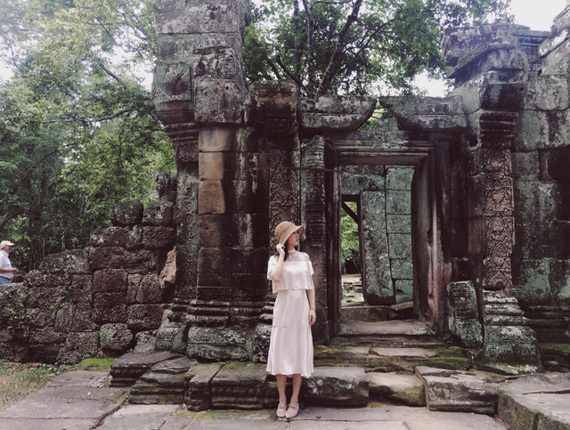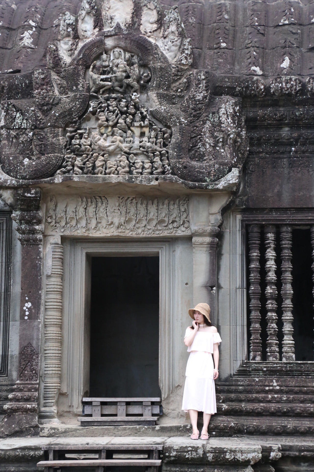 暹粒 的寺庙色调都比较深沉,黑灰为主,白色和红色的裙子是很好的选择,寺庙中是要求不允许穿吊带或者超短裙,如果裙子是吊带款式的话,可以像我一样在外面可以配一件外套,拍照的时候脱下来就行啦!