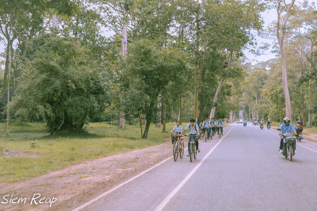 在漆黑的夜里出发,tutu小哥早就在酒店外等候,路上全是和我们一样去看日出的人,tutu车呼啸而过,清晨的凉风把面部局部睡眠的我吹醒,暹粒也就这个时候是凉快舒服的。