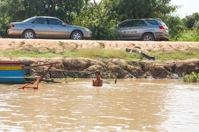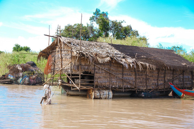 相传洞里萨湖底有一条七头蛇神,有一天,蛇神的女儿即将嫁给印度王子,于是这蛇神便张开大嘴,把大部分湖水吸进肚里,很快就变出了一大片肥沃的土地,作为女儿的嫁妆。