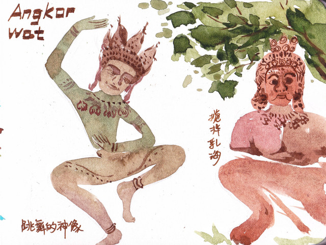 曾经读过印度教史诗《摩诃婆罗多》,被其中记载的想象力超群神话故事所折服。此时吴哥寺中的墙面上雕刻的正是最有名的搅动乳海。