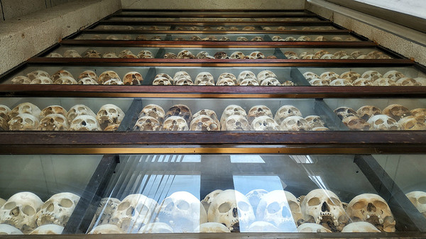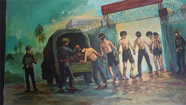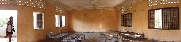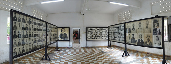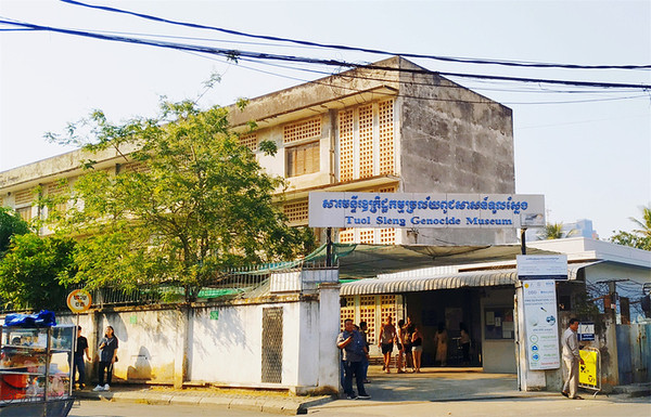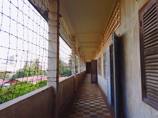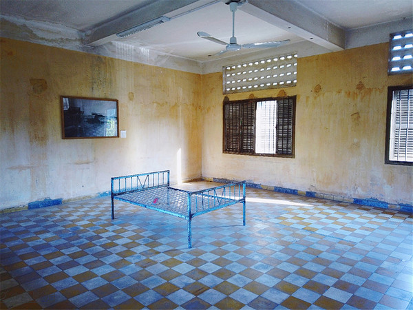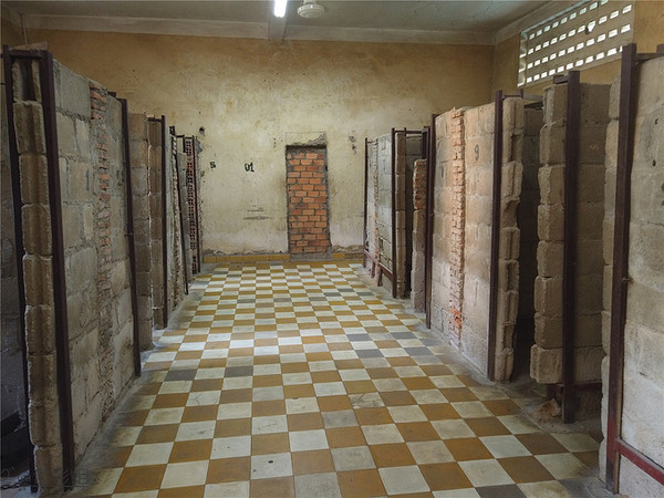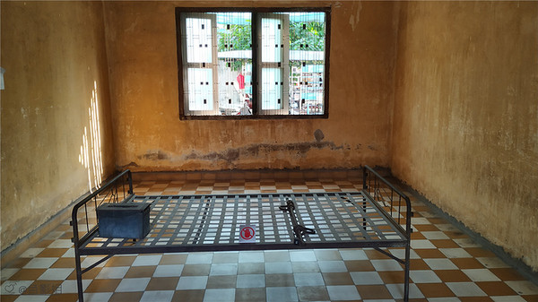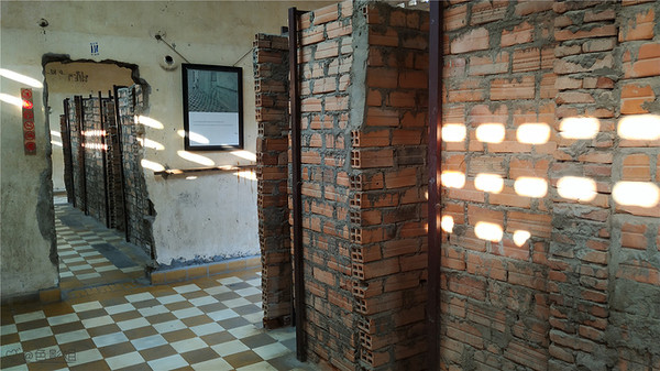 这个地方的中文全称叫做堆斯陵屠杀博物馆,也叫做S-21集中营,它的前身是一座学校,后来被改造成了一所监狱,这里面有200间狱室,是红色高棉政权的绝密中心,当年大约有1万2千至2万人被囚禁在这里 饱受折磨,后来被全部杀害,幸存者仅有12位,很讽刺的是,这12位大部分都是监狱的管理者,就是狱卒,其实他们也是受害者,错误的是当时的政府。