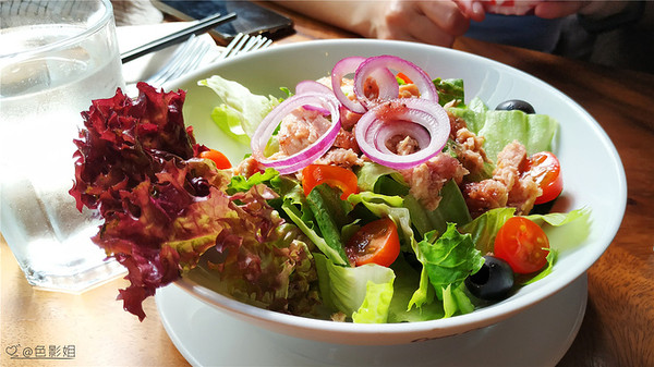 吃完米饭吃沙拉,然后把水果和难吃的面包一起全扫光,我这是个好习惯,不浪费。
