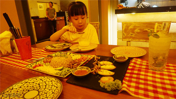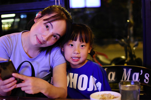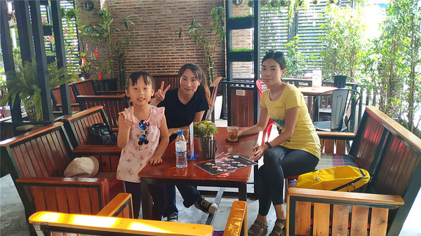 在民宿里休整了一下下,我们又步行出来觅食,牵着小朋友的手,小心翼翼的在路边走,我妹说刚经过一家Mama's coffee,于是步行走回来了。
