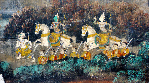 因为入口的地方就是壁画走廊,壁画廊比较长,因为年代已久,壁画很多地方受潮发霉起壳了,已经在修复之中看到已经修复了大概一半了,修复过的地方颜色比较鲜艳,图案比较清晰,重现了过去的经典。