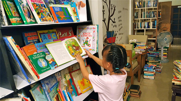 即使是二手书,也被工作人员认真的分好了类,一个类型的就归到一块儿,方便读者查找。